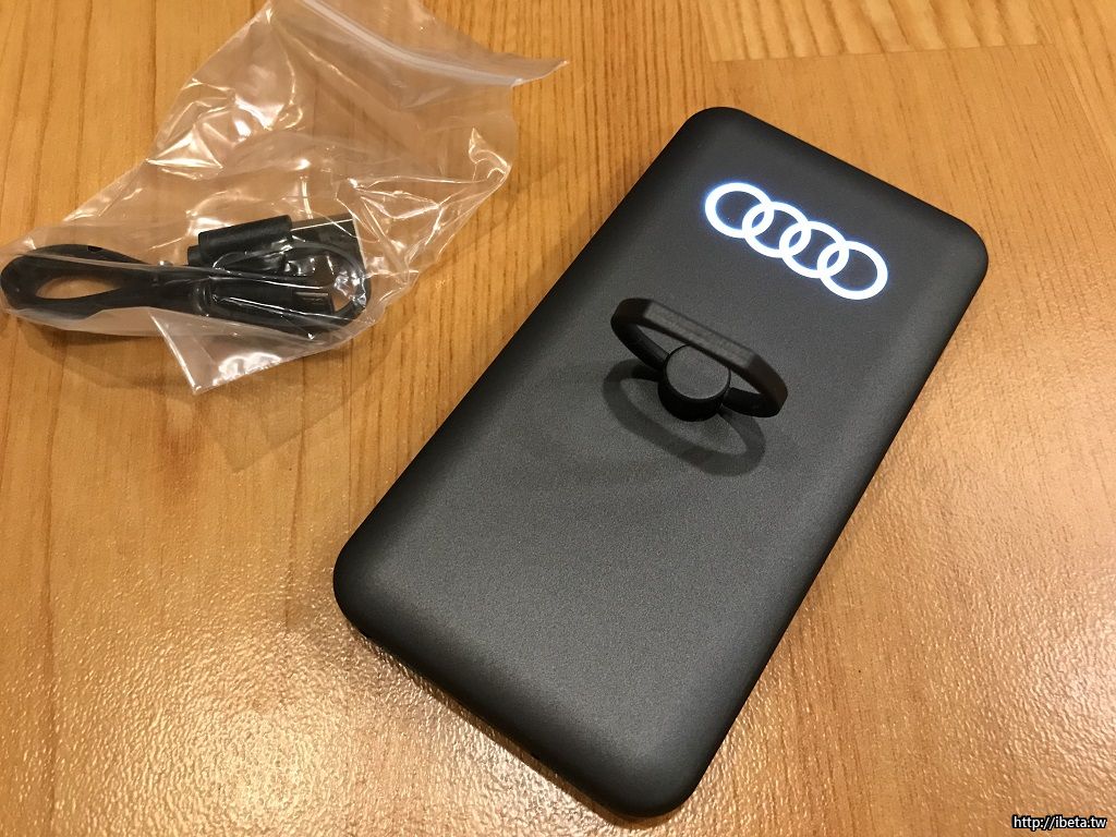 這台超酷的吸盤式行動電源是奧迪原廠保養廠贈送的。背面的Audi四環標誌在使用時會發光,側面也有電量顯示。正面的吸盤可以吸附市面上大部分手機或平板,背面的手指環可以方便手持或當作腳座放在桌上,看起來非常的實用! 我是個不用行動電源的人,所以這就轉讓給需要的朋友。產品只有打開來檢差功能跟拍照,算是全新。