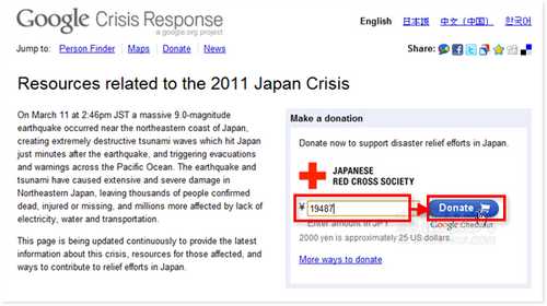 Google 捐款網址:Google Crisis Response (單位為日幣,每筆至少100日圓以上)