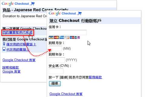 第2步 如果你沒有Google帳戶或沒註冊過Google Checkout,可以點一下「第一次使用 Google Checkout 嗎?」下面的連結,然後直接輸入你的信用卡資訊,讓他自動扣款即可。