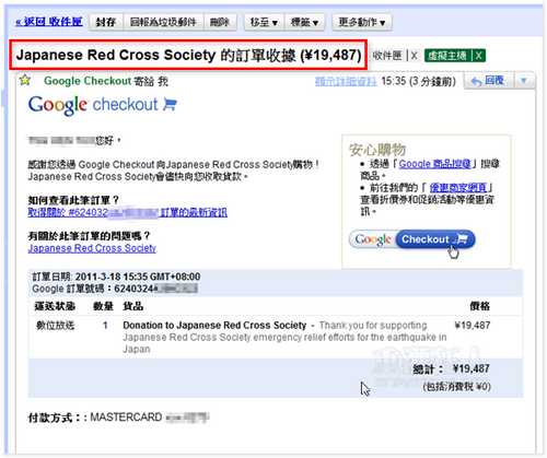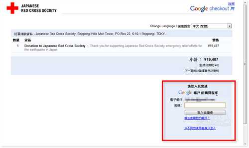 每筆捐款至少100日元以上,輸入完畢再按「Donate」繼續下一步。如果你有Google帳戶並曾經註冊過Google Checkout(Google的線上付款服務)的話,可以登入後再按捐款。