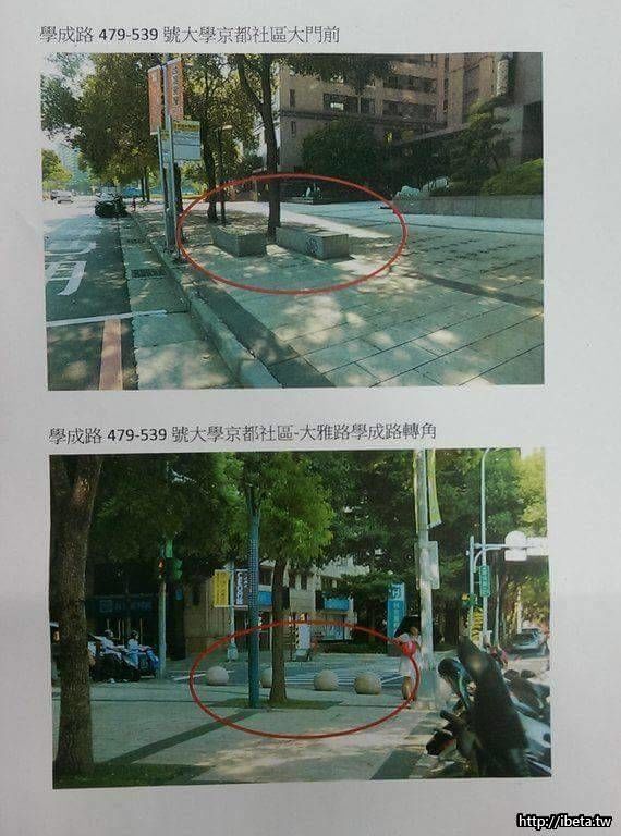 1.基於保護里民及老人小孩可以安心行走; 及維持人行道及社區退縮空間地磚完整性,將積極協助社區申請車阻,若有與現行法規抵觸之處,將要求市府儘快修法恢復車阻。