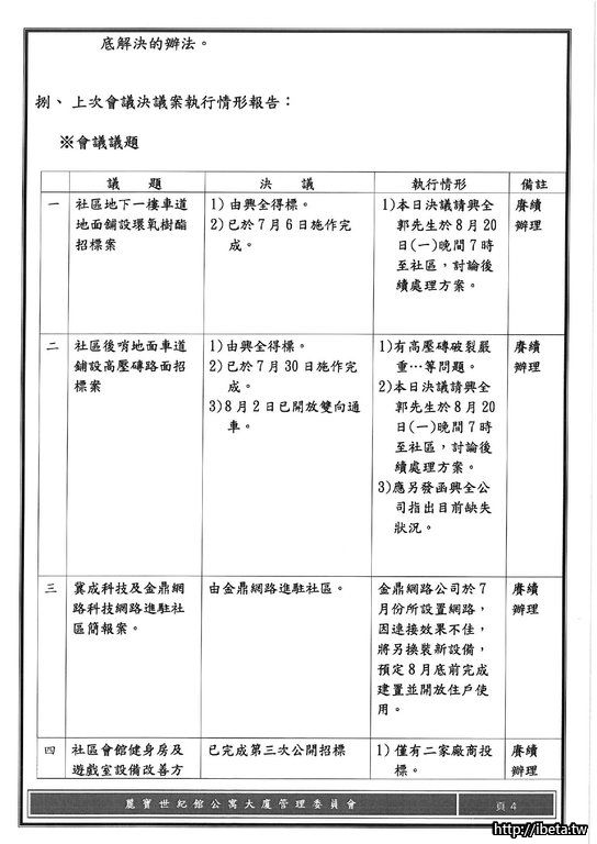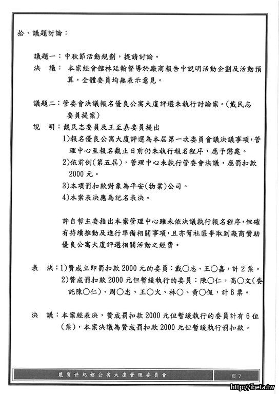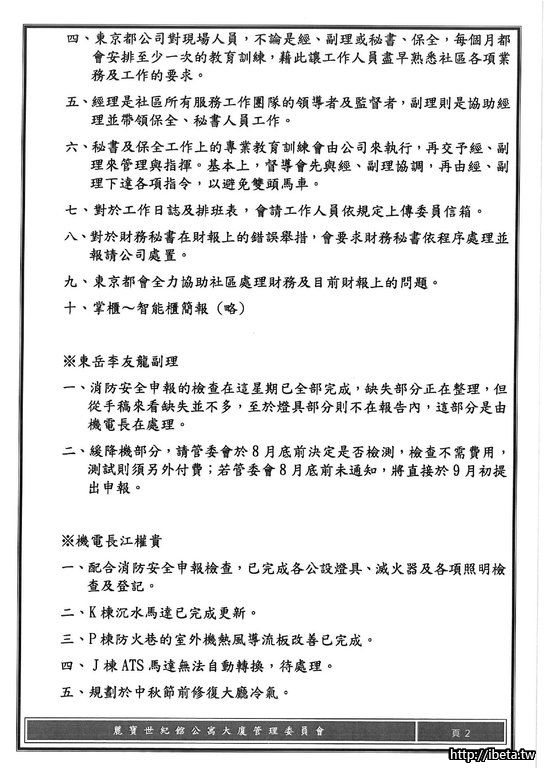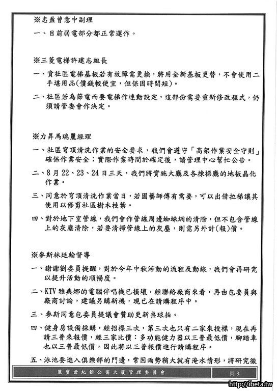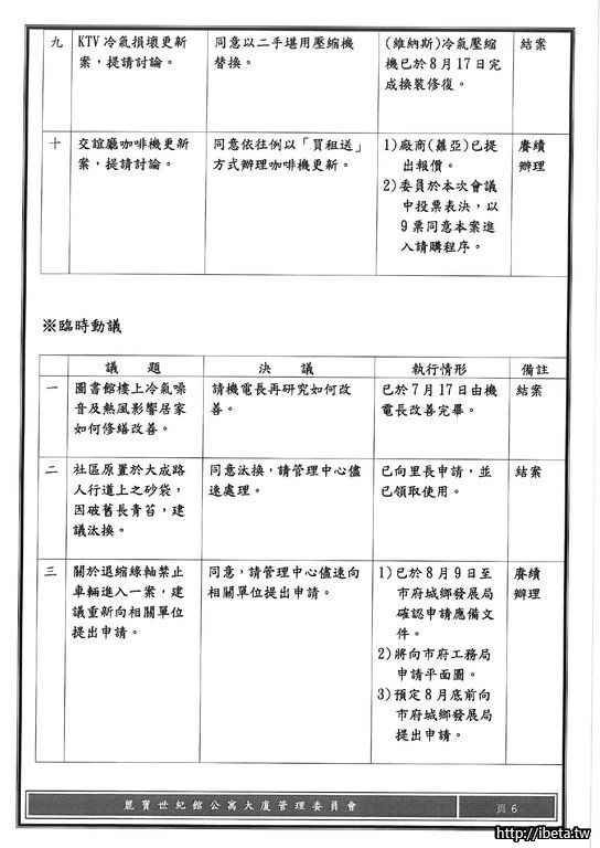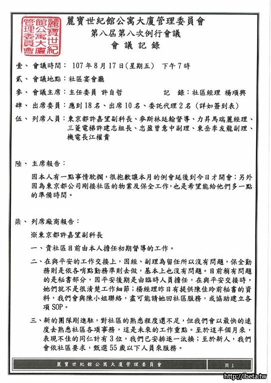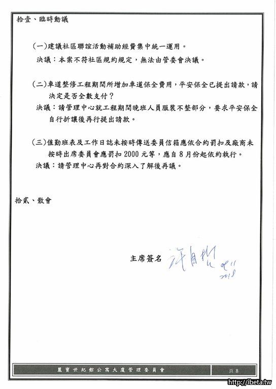第八屆管理委員會 第八次例會開會會議紀錄