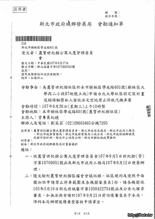 公告 107073 社區申請退縮綠軸禁止停車一案