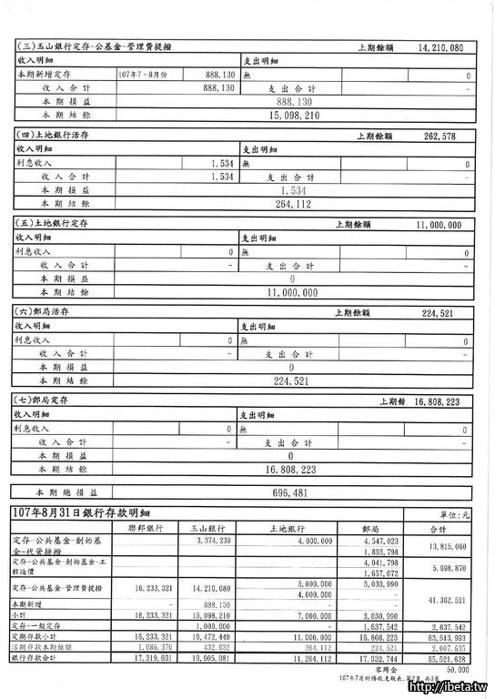 第八屆107-08收支月報表&107年度財務報表