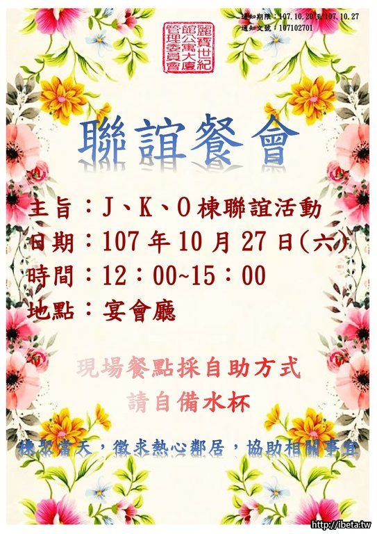 K.J.O棟聯誼餐會通知