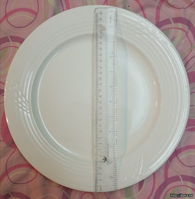直徑約為31.5cm, 盤子中間的直徑是22cm, 盤子約1cm淺, 一個重量滿重.