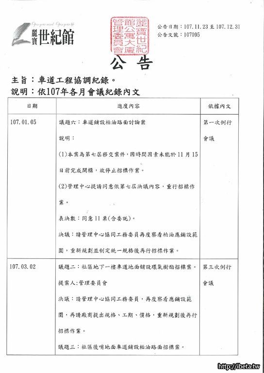 公告 107095 車道工程協調紀錄