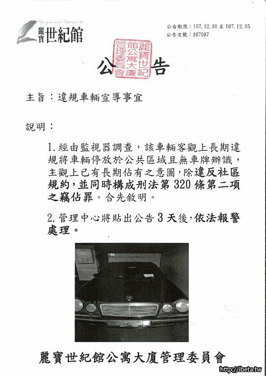 公告 107097 違規車輛宣導事宜