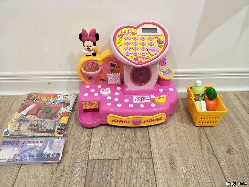 1.米妮正版電子收銀機:任何玩具配備皆可刷條碼顯示價錢,有聲音, 售價200元(已售出)
