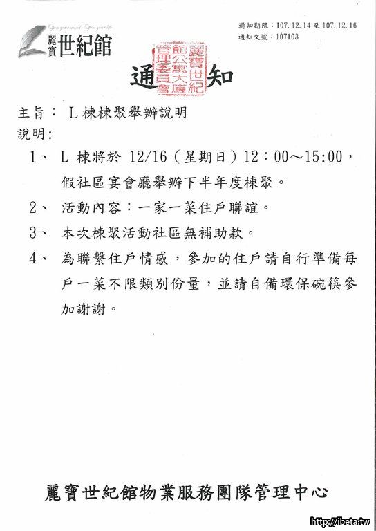 公告 107103 L棟棟聚舉辦說明