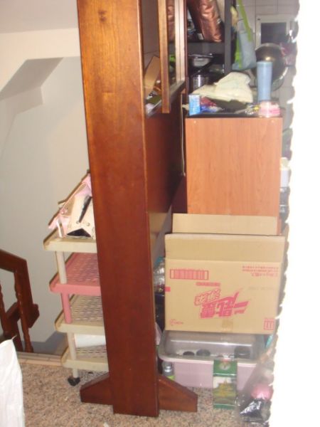 鏡子後面的簾子可以手拉升降,鏡子也可獨立取下使用,上簾子左右各側有灯(買來時它會亮,但因為都沒使用過,應該還是好的)