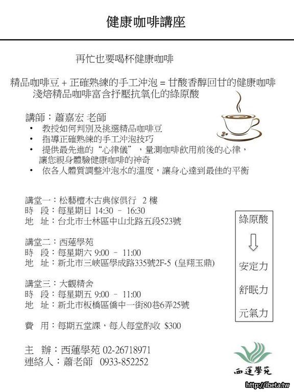 健康咖啡講座