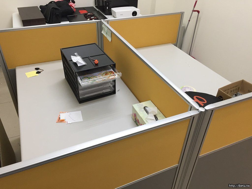 其中有2人的坐位區有桌板 (卡在OA屏風上, 不需桌腳)