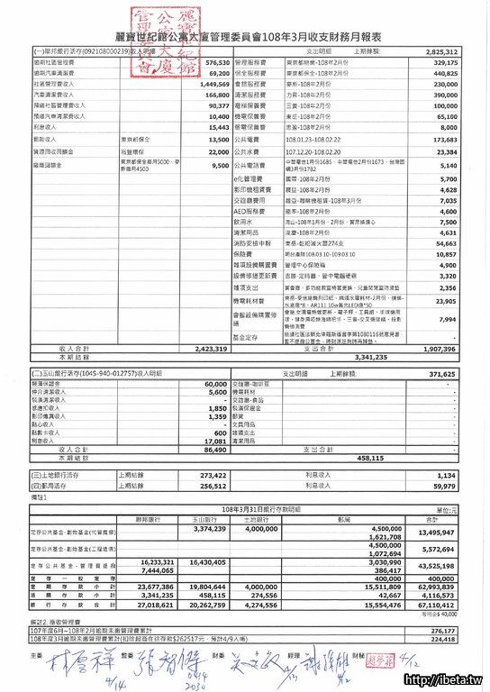 第九屆108-03收支月報表&108年度財務報表