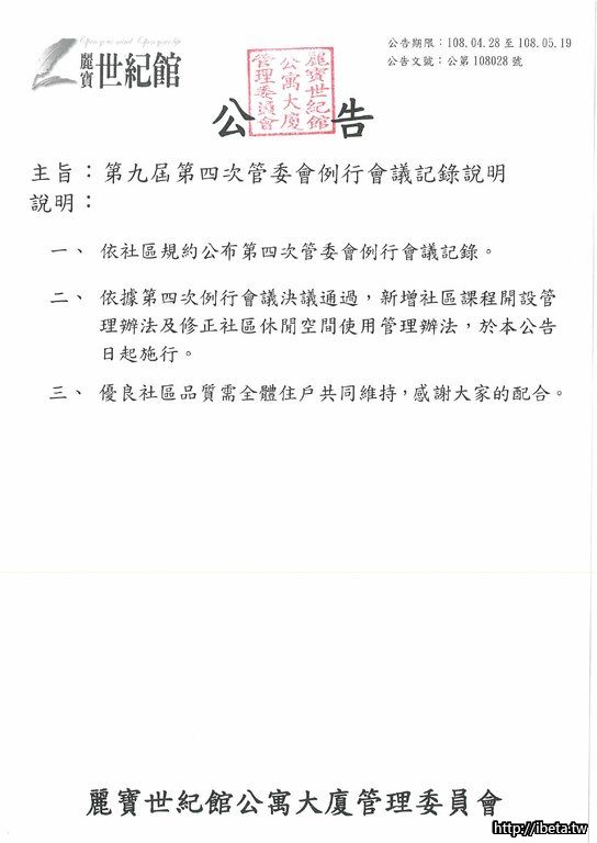公告文號108028 第九屆第四次管委會例行會議紀錄說明