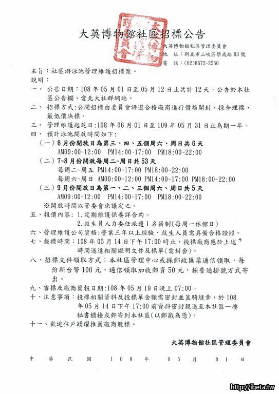 108年游泳池管理維護招標案