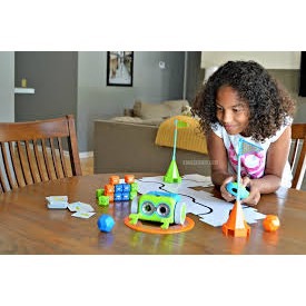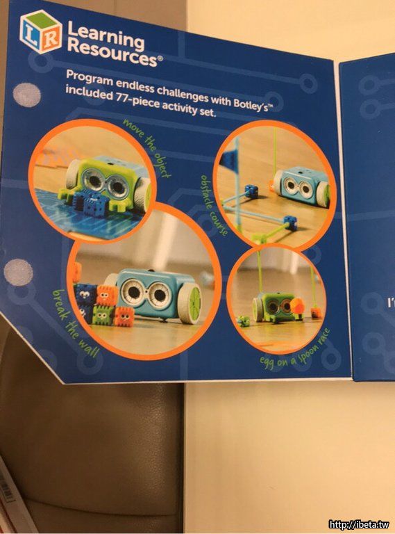 一組商品裡頭包含機器人(Botley) 遙控器(程式設定器)路徑圖 障礙方塊 指令卡等,小朋友可以透過遙控器下指令給機器人,讓做一些事情,譬如閃障礙物。