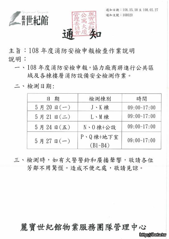 通知文號108020 108年度消防安檢申報檢查作業說明