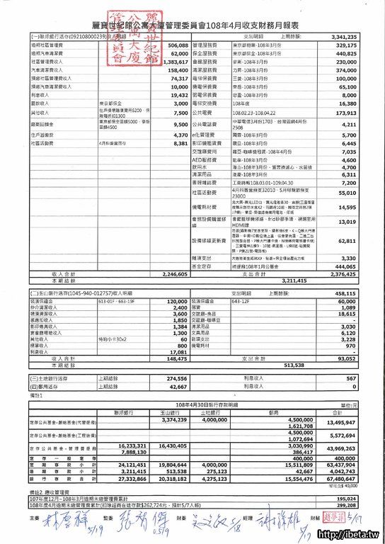 第九屆108-04收支月報表&108年度財務報表