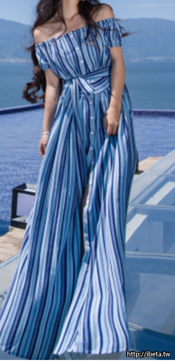 12) 200元 - 已拆封未穿過 - 女 - 水藍色條紋M號 - 度假必備連身洋裝