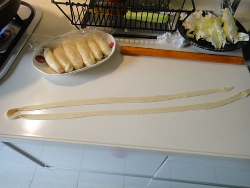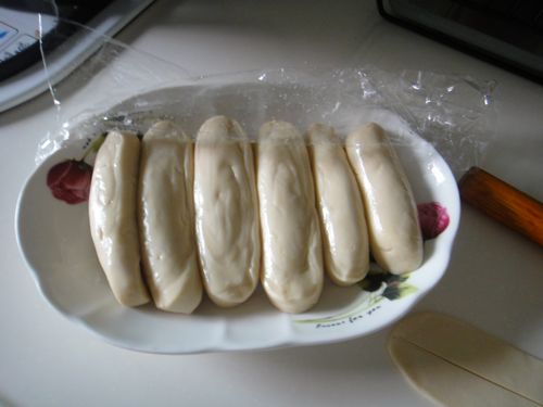 在揉成條形狀 ,摸沙拉油 ,醒面大概30分鐘左右