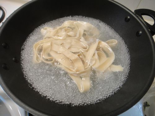 沸騰水把面放入煮,3次滾水煮好的面