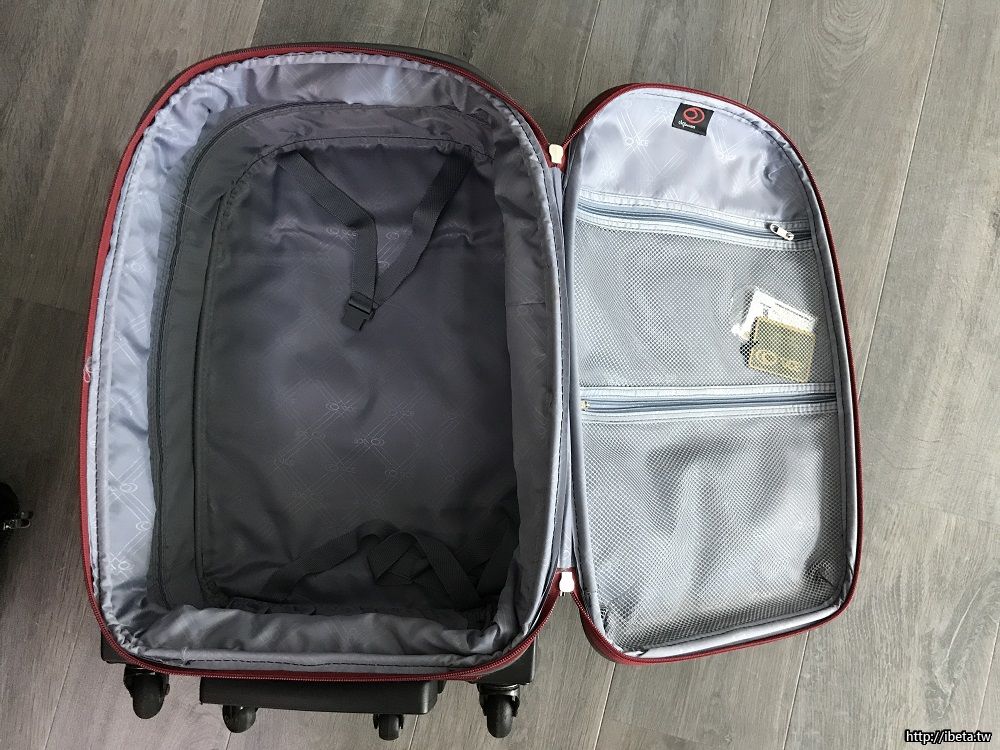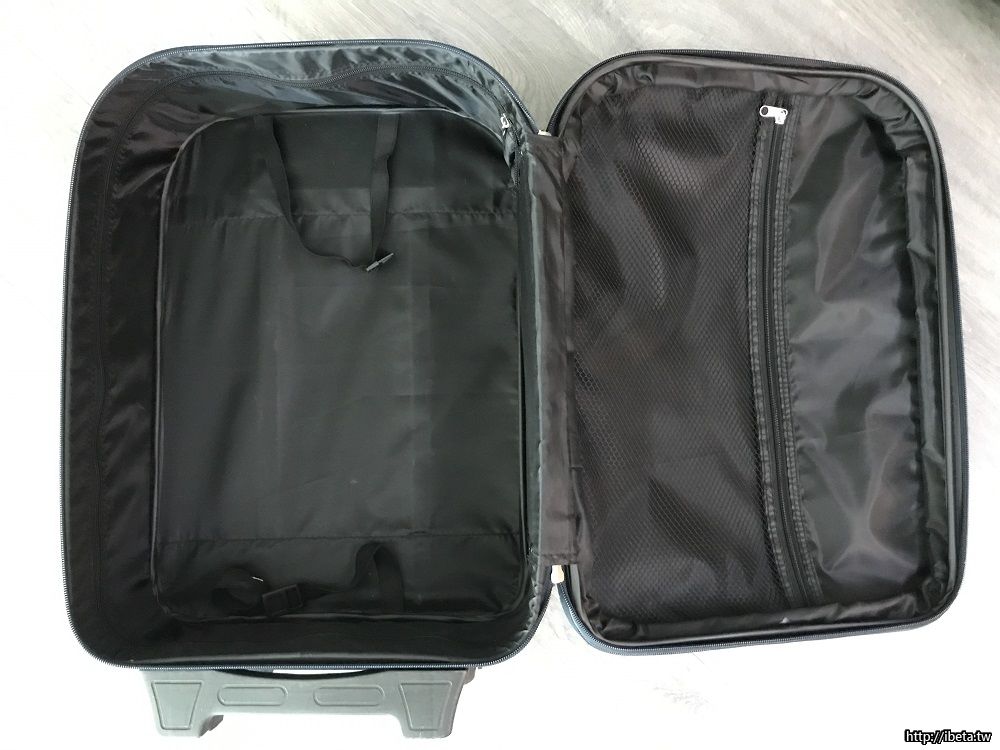 中間有拉鍊,可以側面加寬,讓行李箱容量變大。