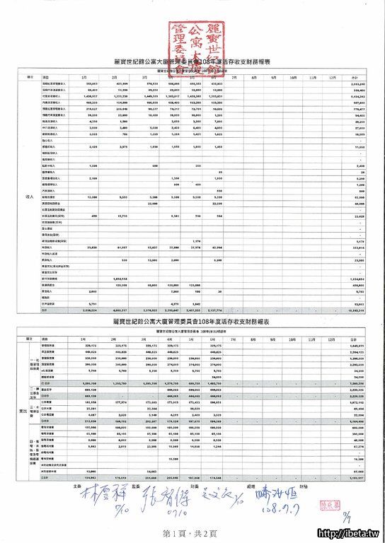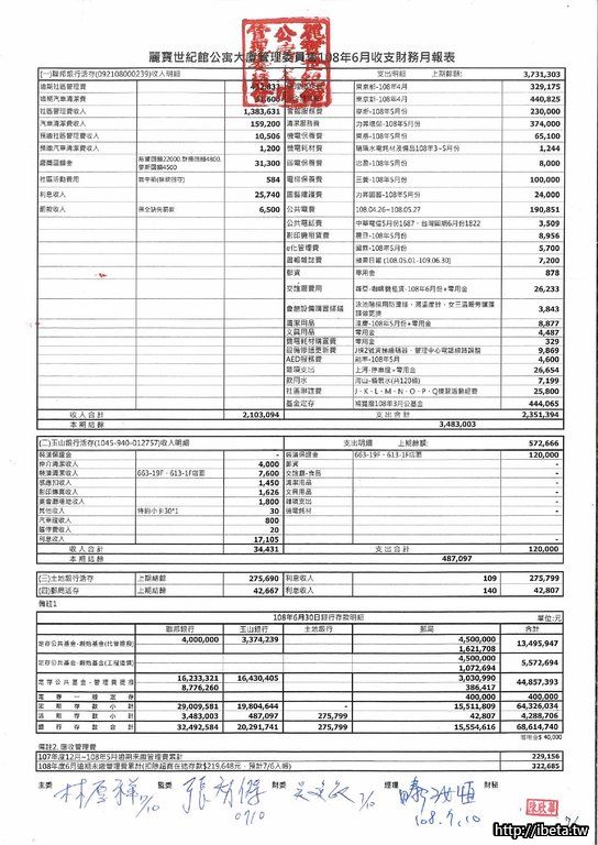第九屆108-06收支月報表&108年度財務報表