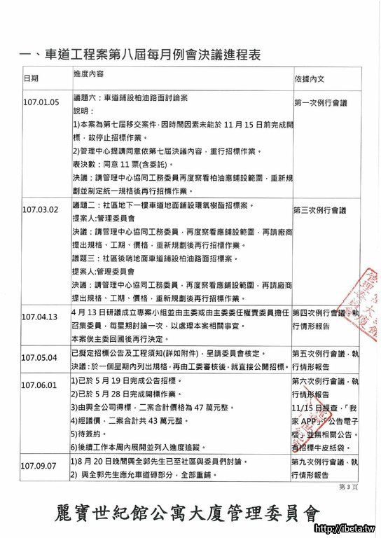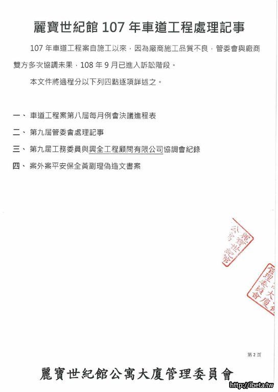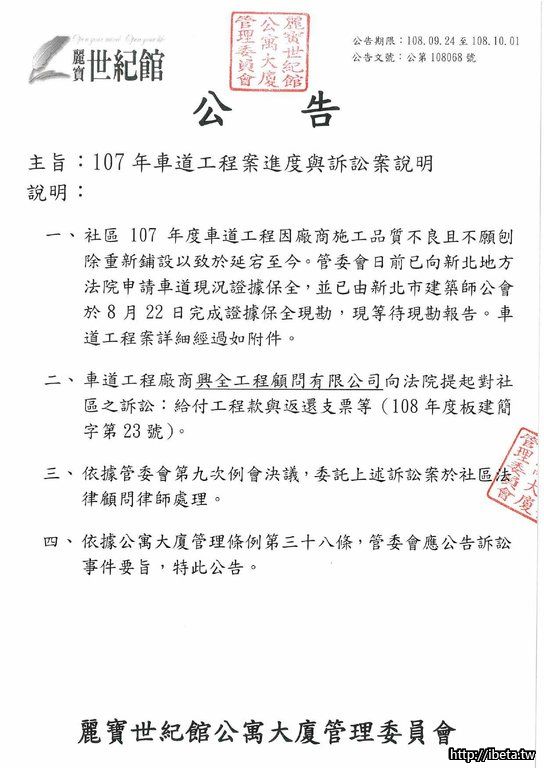 公告文號108068 107年車道工程案進度與訴訟案說明