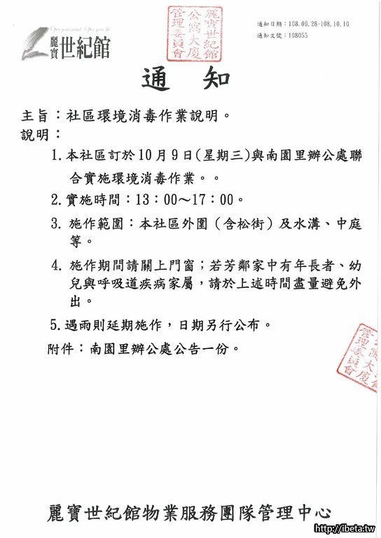 通知文號108055 社區環境消毒作業說明
