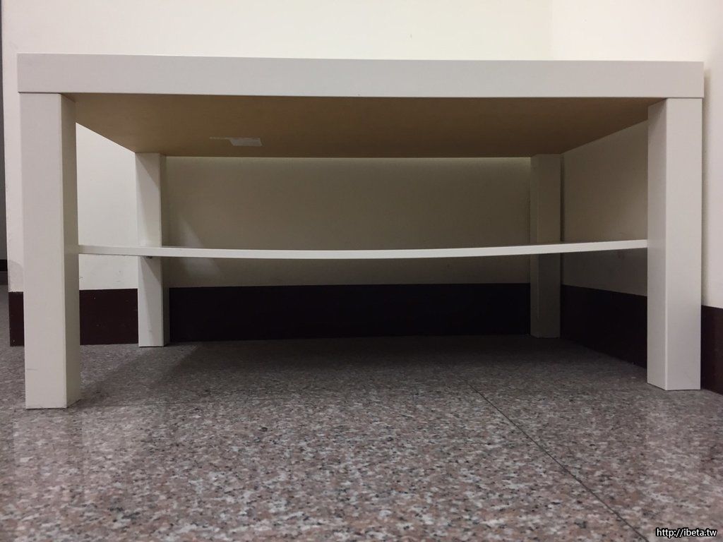裝況:8成新,桌面上有一個約0.2cm的小脫皮,底下的置物板略向下凹陷