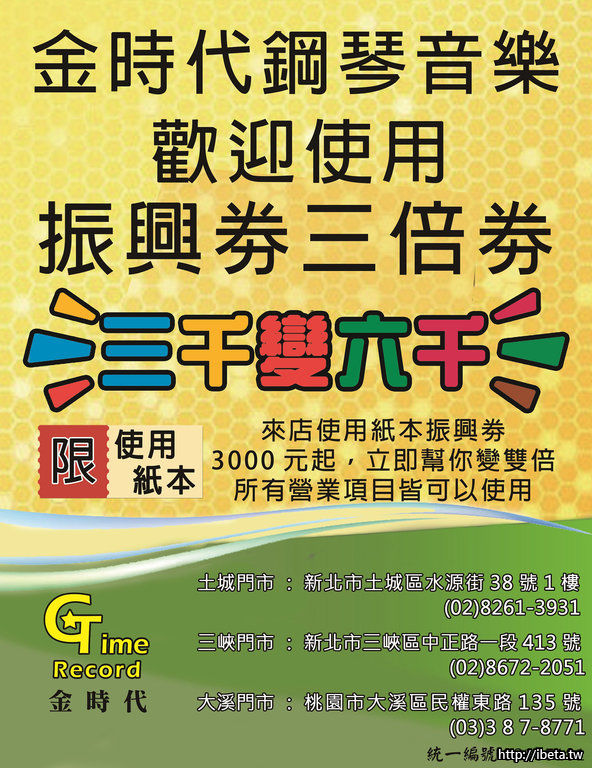 即日起到 金時代鋼琴音樂教室 三峽門市