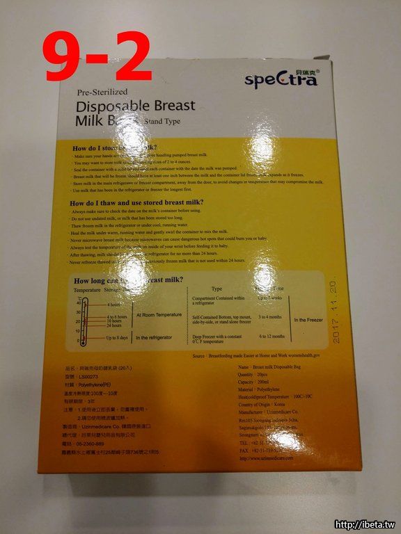 9.貝瑞克儲乳袋200ml 20入,未使用,