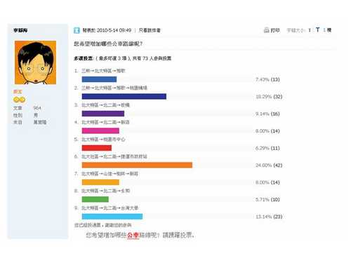 您希望增加哪些公車路線呢?請踴躍投票。