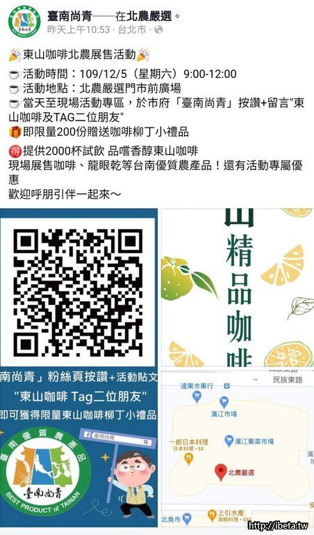今天前往台北市果菜市場參觀台南市"臺南尚青"農產品展售會,對台灣土產的東山咖啡充滿