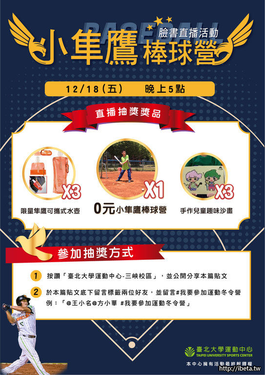 《臺北大學運動中心-小隼鷹棒球冬令營》