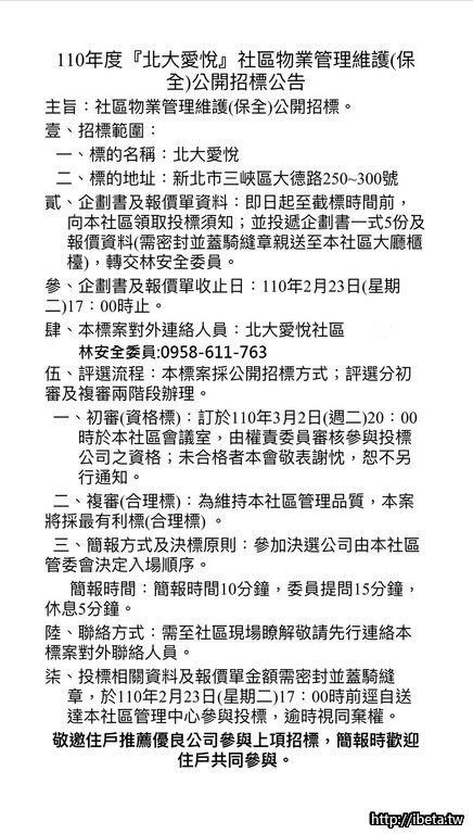 北大愛悅社區物業(保全)公開招標