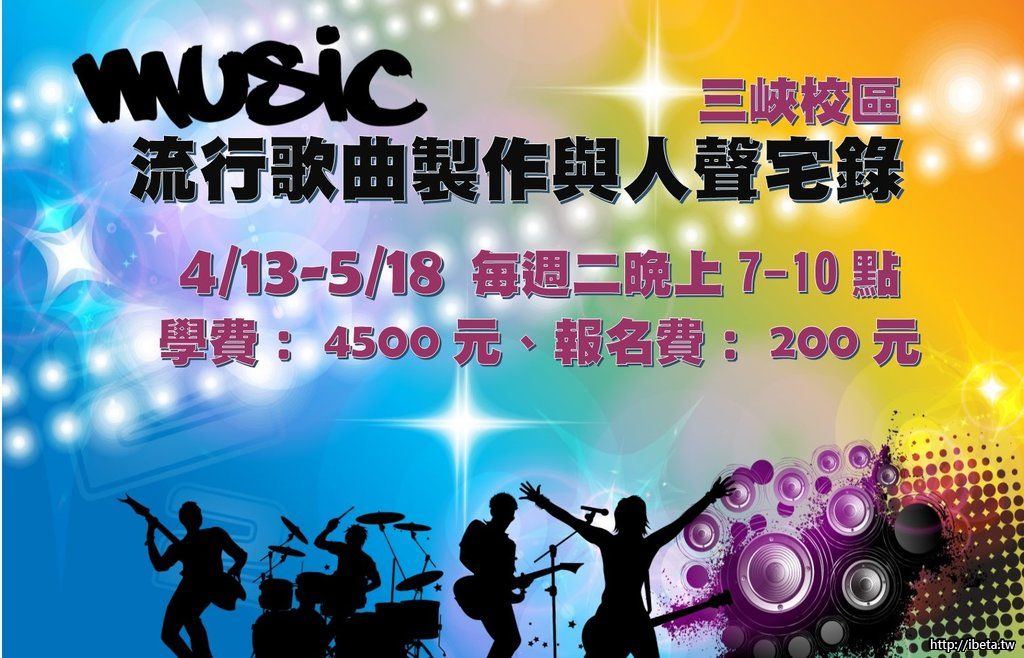 國立臺北大學《流行歌曲製作與人聲宅錄》上課時段:每週二 19:00-22:00