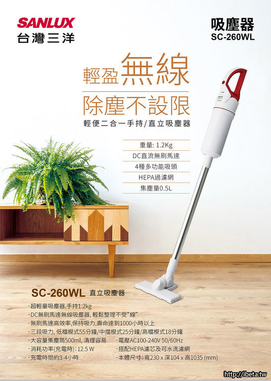 【SANLUX台灣三洋】直立式無線吸塵器 SC-260WL