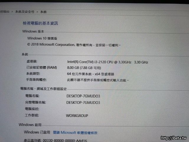 配備如下:處理器 intel i3-2120