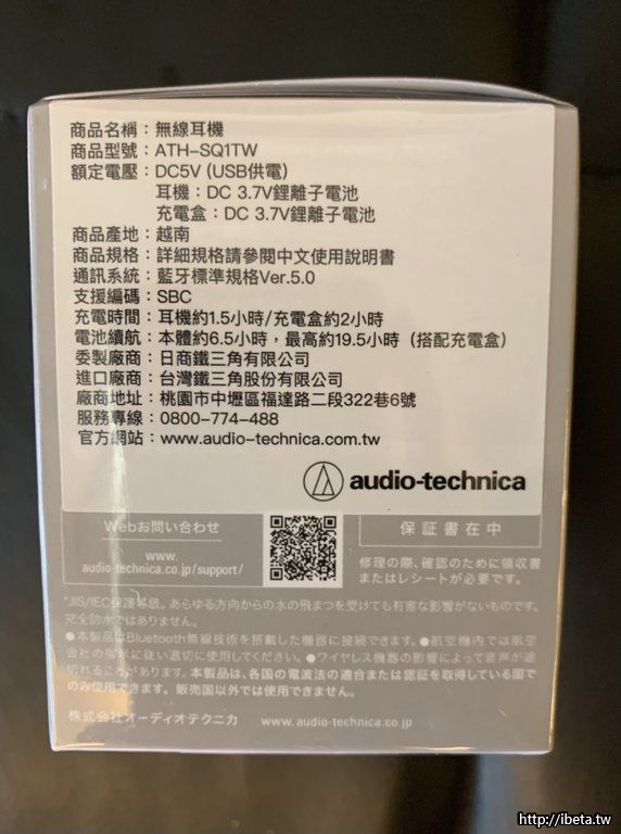 日本鐵三角 ATH-SQ1TW 無線耳機