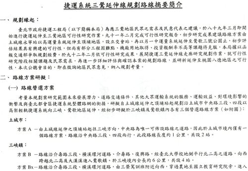 所以我有提一個兼顧三峽市區、北大特區以及土地開發效益的路線方案,不過我目前沒時間畫圖,只有文字敘述,可以參考看看。
