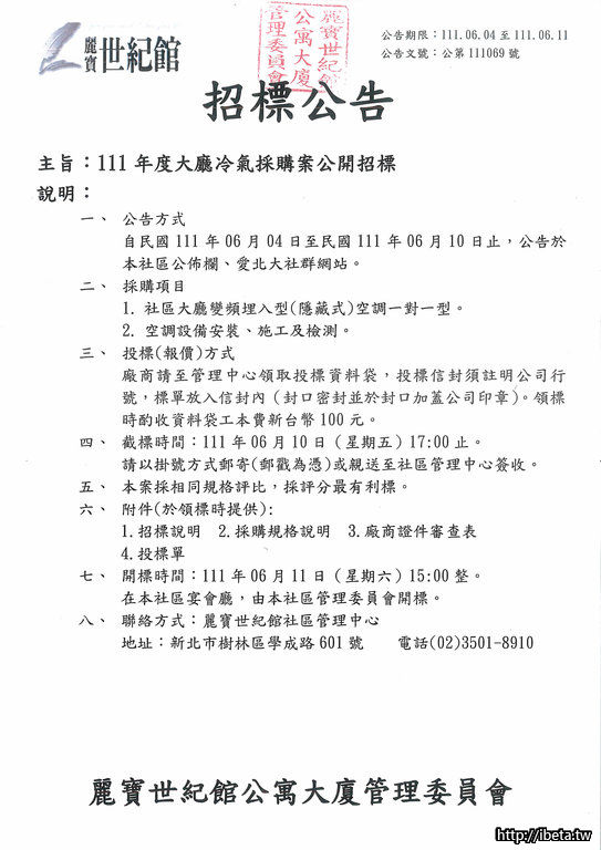 自民國111年06月04日至民國111年06月10日止,公告於本社區公佈欄、愛北大社群網站。
