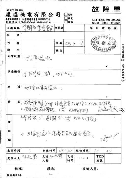 1.本社區前已由康盛機電將原5HP馬達更換為7.5HP馬達