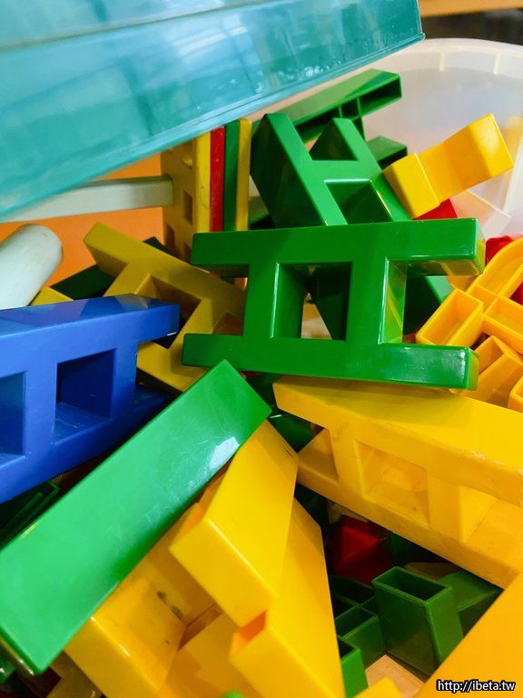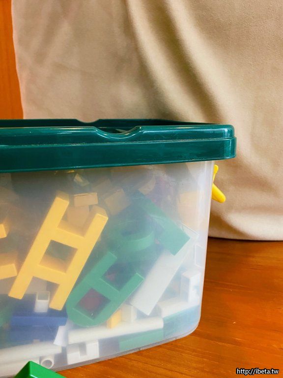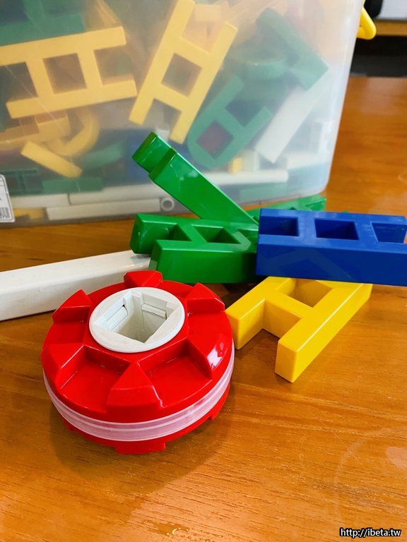 此種積木可自由組裝成有輪子的車子或可移動的裝置等,當初於百貨公司購入。