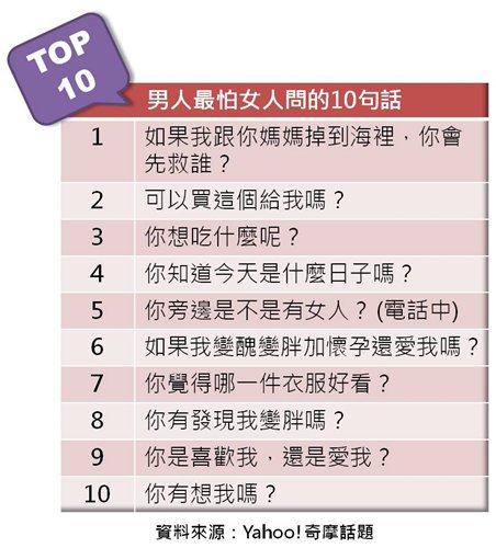 哈哈我好像除了五其它的都問過耶,老公的回答都還算是满意的呵呵。