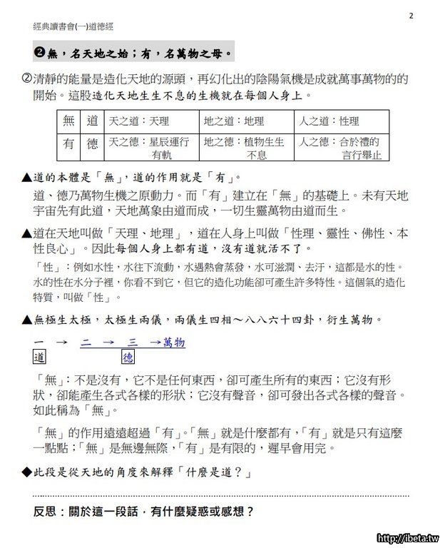[font=inherit]悟透道德經的第一、二章,即能貫通整部81章的概要,更重要[/font]的是明確自己的生命方向