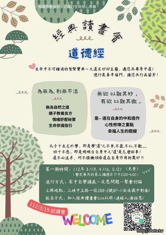 報名方式或提問:請點連結加入經典讀書會Line社群(或掃QR-Code)