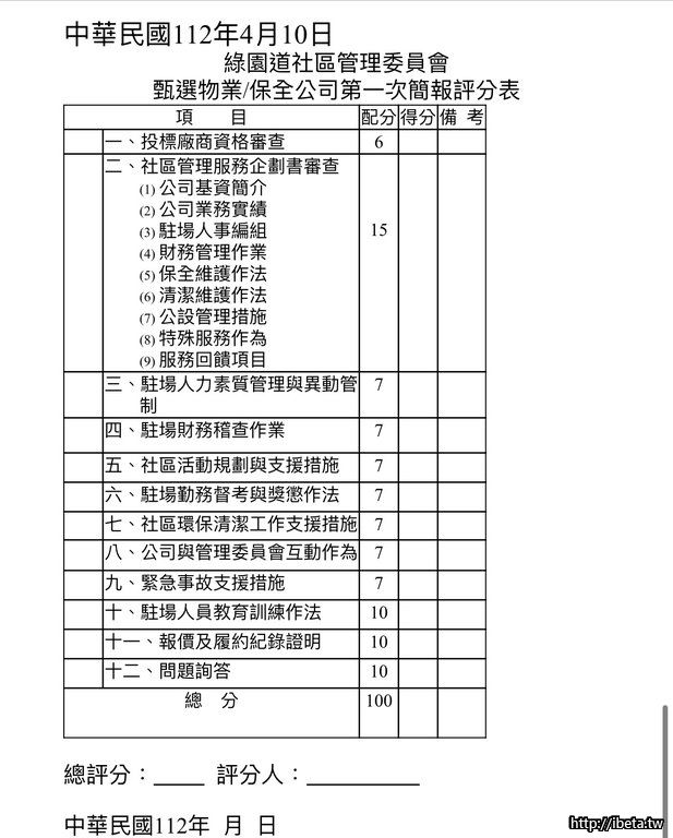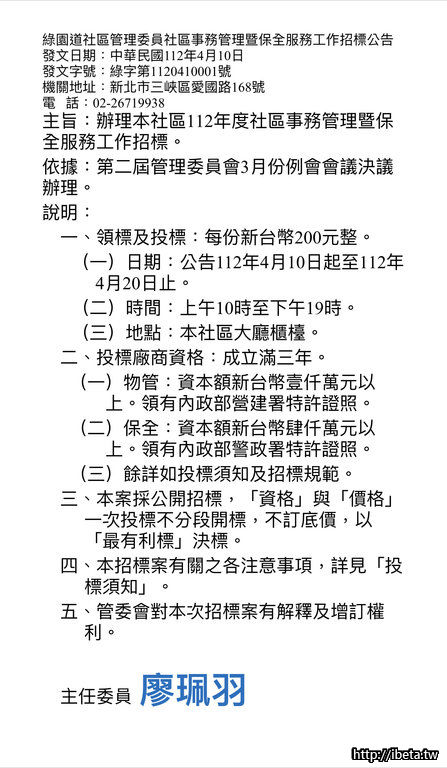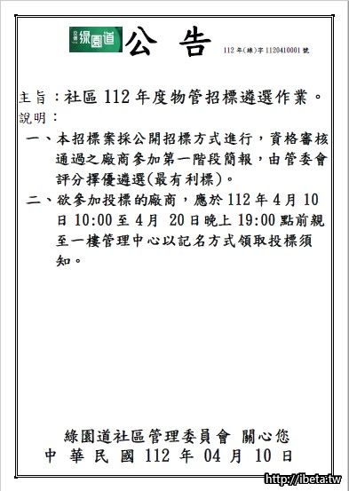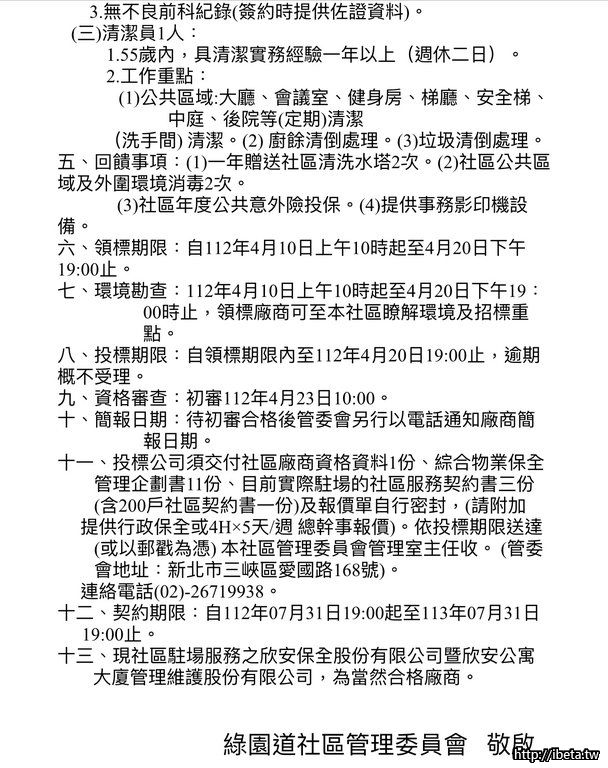 綠園道社區112年度 物業(保全)招標