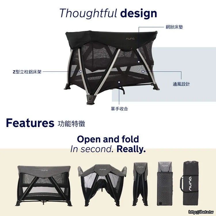 NUNA 嬰兒床-可睡到三歲-含蚊帳-含尿布抬-可折疊收納-二手